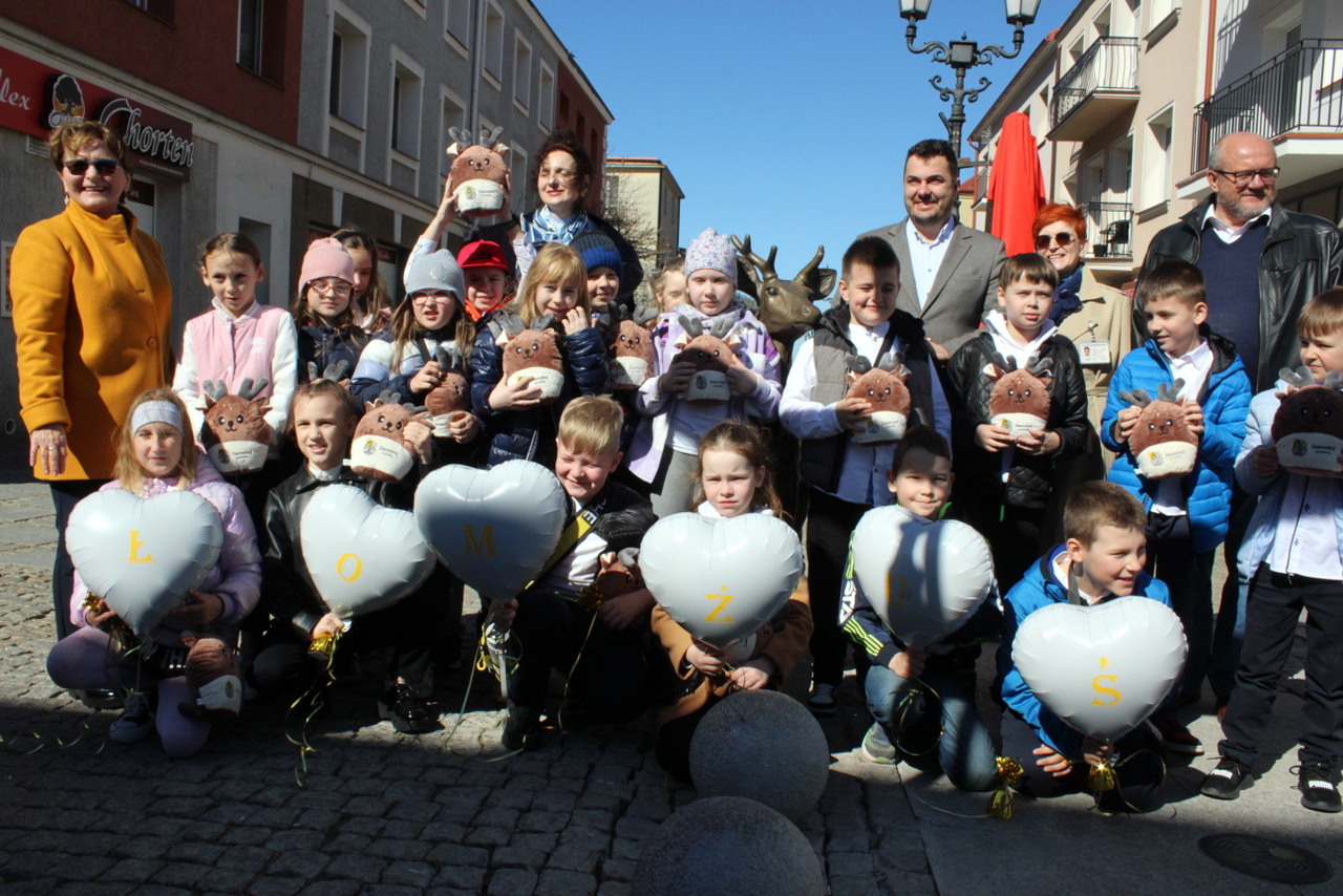 Łomżuś – od dziś oficjalnie takie imię nosi jelonek usytuowany u zbiegu ulic Farnej i Długiej. W zorganizowanym przez prezydenta Łomży Mariusza Chrzanowskiego konkursie to właśnie ta propozycja uzyskała najwięcej, bo ponad 300 głosów. Nazwę wybrali mieszkańcy w internetowym głosowaniu. Pomysłodawcami byli uczniowie klasy II A ze Szkoły Podstawowej nr 10. Dziś, 4 kwietnia 2025 roku, zwycięzcy wraz z włodarzem miasta uroczyści nadali imię młodemu jeleniowi.