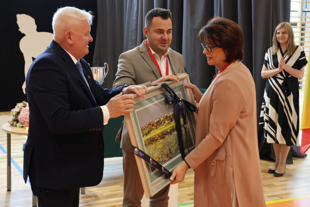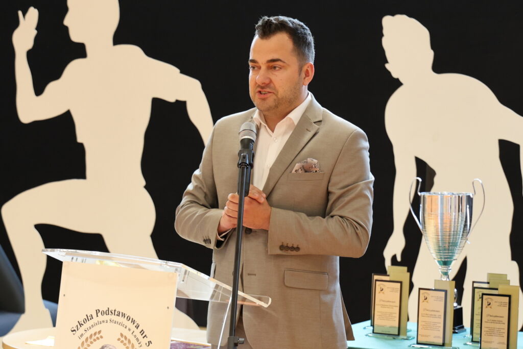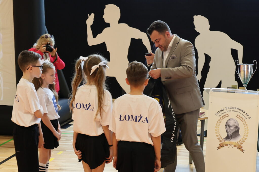 – Rozpoczynając inwestycję nie mieliśmy zapewnionego wsparcia zewnętrznego. Pomimo krytyki części radnych uważałem, że należy podjąć ryzyko i w trakcie realizacji zadania poszukiwać możliwości zewnętrznego dofinansowania. Dziś możemy powiedzieć, że to się opłaciło, gdyż z własnego budżetu dołożyliśmy tylko 19 proc. wartości przedsięwzięcia, a dzieci oraz młodzież z „Piątki” i całego miasta mogą cieszyć się z nowoczesnego obiektu sportowego – podkreślił prezydent Łomży Mariusz Chrzanowski, który przekazał samorządowi uczniowskiemu worek z piłkami do halówki, koszykówki i siatkówki, a dyrekcji pamiątkowy obraz.