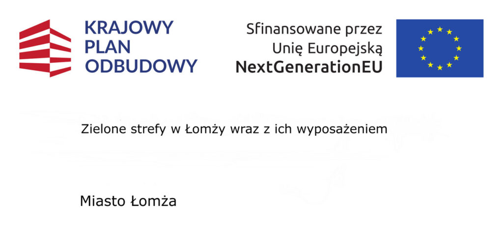 Zielone strefy w Łomży wraz z ich wyposażeniem Pożyczka inwestycyjna w kwocie 350 407,00 zł ze środków Krajowego Planu Odbudowy i Zwiększania Odporności w ramach inwestycji B3.4.1. „Inwestycje na rzecz zielonej transformacji miast”