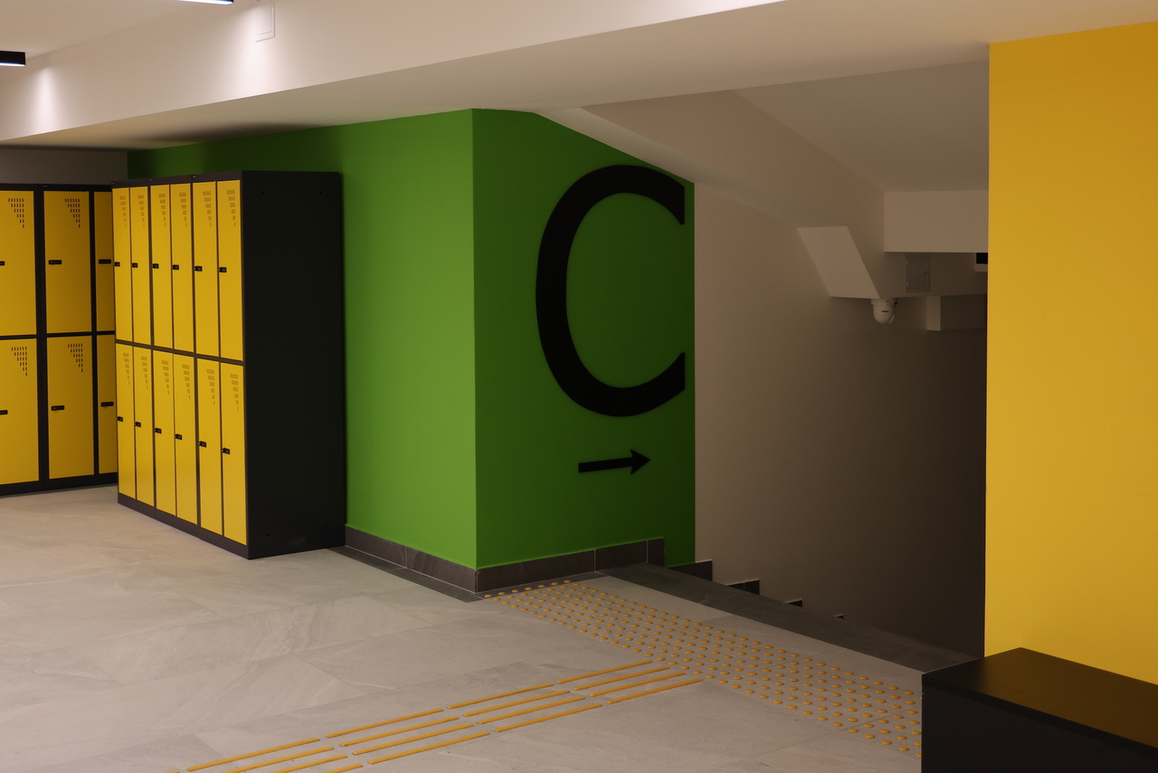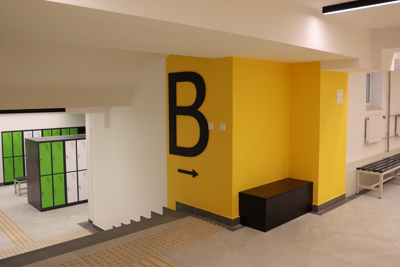 Sercem inwestycji stała się nowoczesna szatnia, wyposażona w estetyczne i funkcjonalne szafki ubraniowe dla blisko 1300 uczniów. Młodsze dzieci korzystają z szafek zamykanych na kluczyk, natomiast starsi uczniowie – z szafek z zamkiem szyfrowym. Przestrzeń została zaprojektowana z myślą o bezpieczeństwie, wygodzie i ergonomii, odpowiadając na realne potrzeby uczniów.