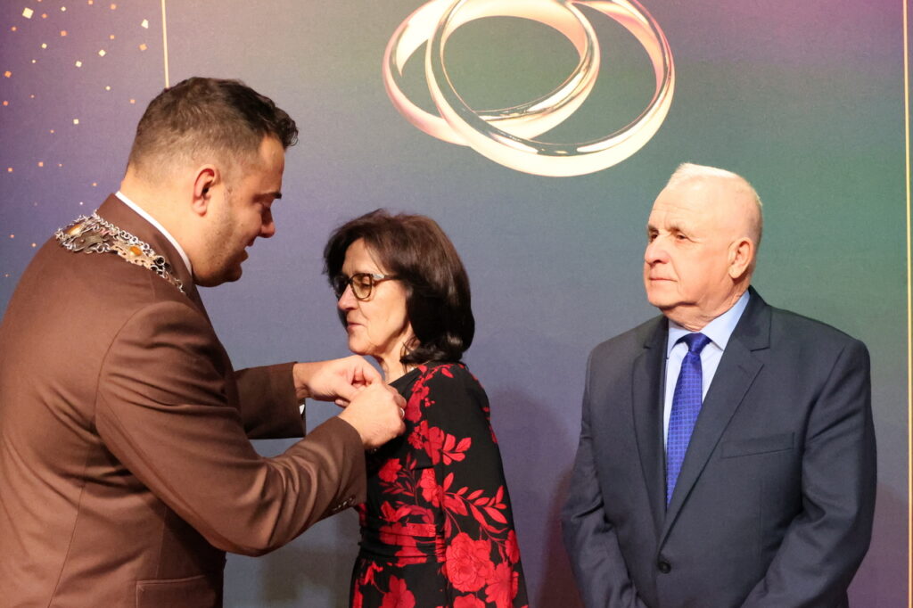 Prezydent Łomży Mariusz Chrzanowski, składając gratulacje, podkreślił wyjątkową wartość małżeństwa i rodzinnych więzi. – Pięćdziesiąt lat wspólnego życia to niezwykłe świadectwo miłości, wierności i oddania. W dzisiejszych czasach, gdy tempo życia często wystawia relacje na próbę, Państwa jubileusz jest pięknym dowodem na to, że wzajemny szacunek, odpowiedzialność i troska o drugiego człowieka nigdy nie tracą na znaczeniu. Jestem dumny i wdzięczny, że wśród mieszkańców Łomży są małżeństwa, które swoją postawą pokazują, jak ważne jest pielęgnowanie tych wartości i budowanie trwałych więzi – powiedział prezydent Mariusz Chrzanowski, dziękując jubilatom za przykład miłości, która trwa mimo upływu lat.