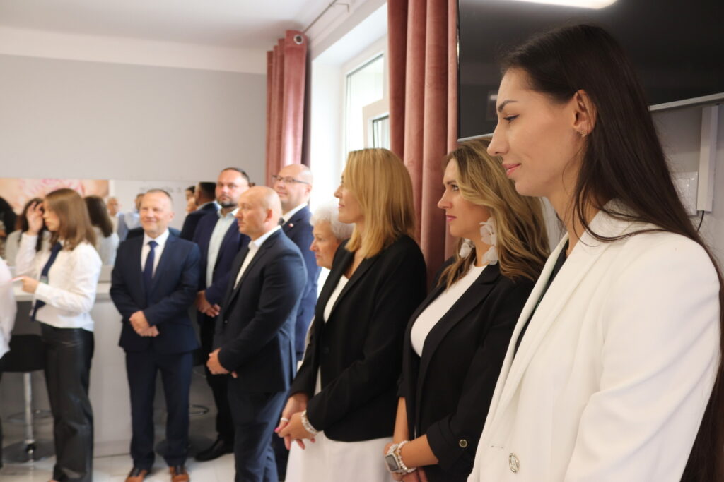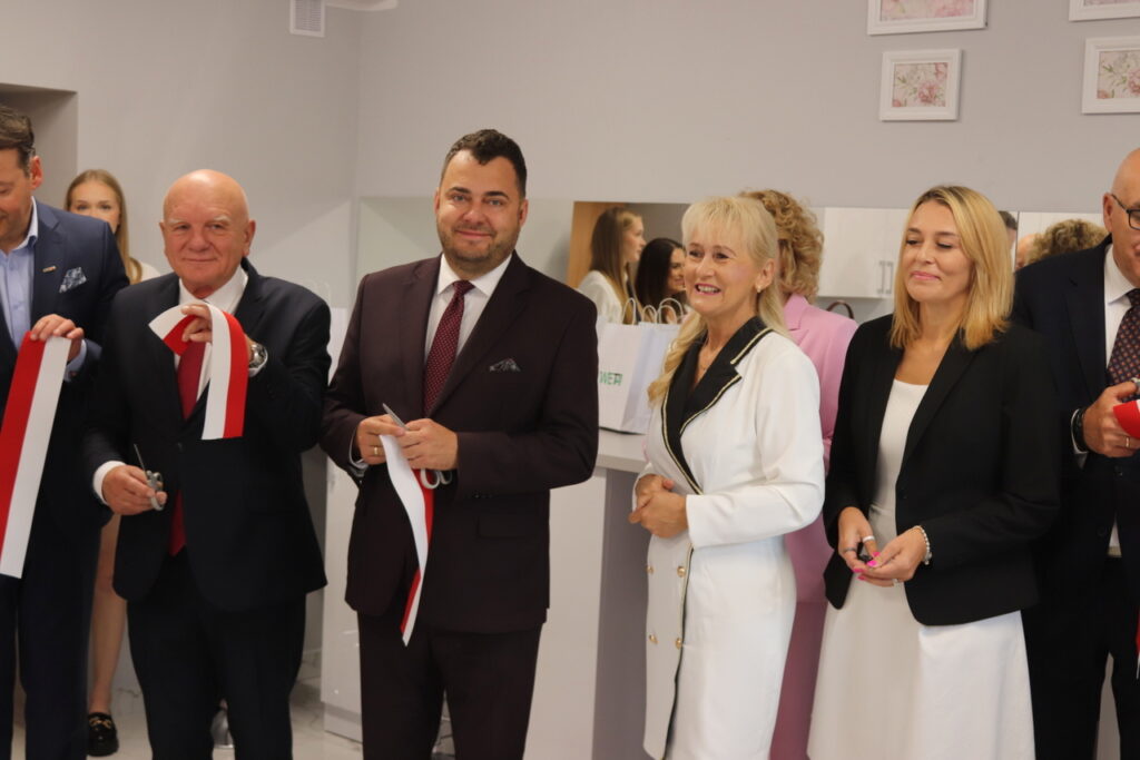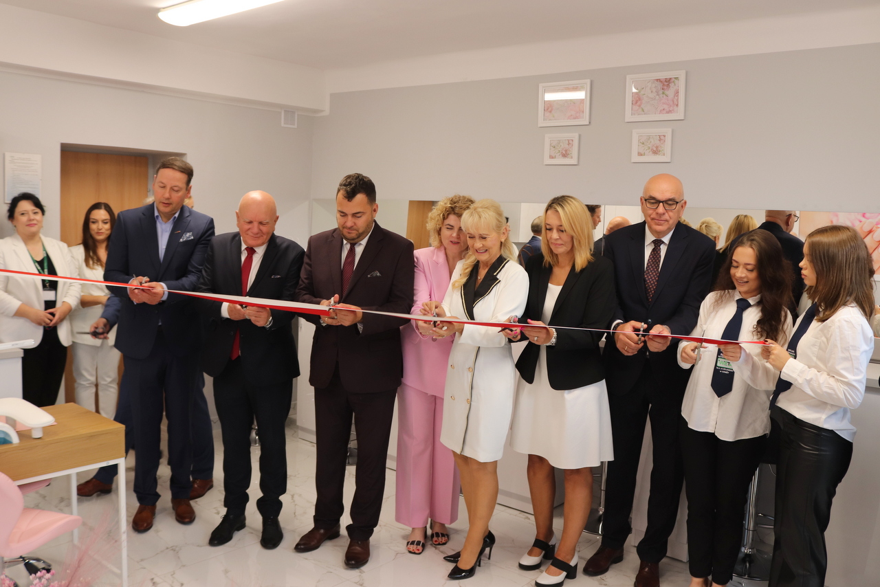 Po uroczystej inauguracji odbyło się symboliczne przecięcie wstęgi w odremontowanej sali wizażu i stylizacji, w której zajęcia będzie mogło odbywać jednocześnie 28 uczniów.